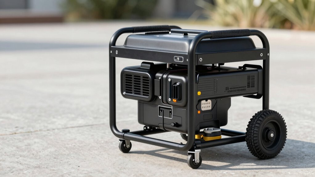 Installing a wheel kit is a walk in the park, especially if you pay attention to handle design and wheel kit durability. You’ll find most kits come with clear instructions, and basic tools are enough to get the job done. With a little effort, you’ll be rolling your generator smoothly in no time. Just make certain you follow the steps carefully, and you’ll enjoy the convenience without a hitch!