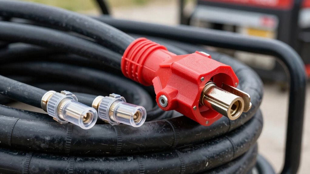 When choosing a 50 amp generator cord, prioritize durability, proper gauge size, and compatibility with your generator and appliances. Ensuring the cord is weather-resistant and has secure connectors will keep you safe and prevent damage. Did you know that over 60% of generator-related accidents are caused by faulty cords? Investing in a high-quality, reliable cord not only protects your equipment but also keeps you safe during power outages. Don’t overlook these key features for peace of mind.