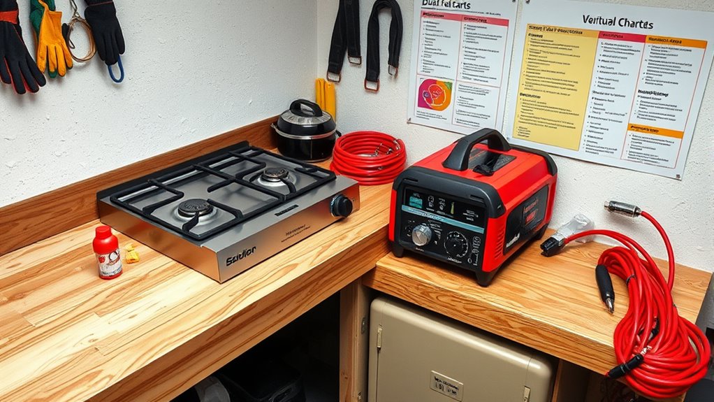 Dual fuel systems can improve household safety by providing reliable power, but you need to stay vigilant about fire hazards and ventilation safety. Proper installation and regular maintenance reduce fire risks, while ensuring adequate ventilation prevents dangerous buildup of gases. Always follow safety guidelines, keep detectors functional, and schedule professional inspections. By doing so, you minimize potential hazards and keep your home safe while enjoying the benefits of dual fuel systems.