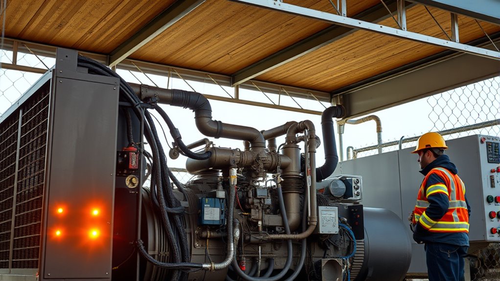 Beyond fuel efficiency and noise control, running a generator 24/7 demands consistent maintenance to prevent breakdowns and ensure safety. You should schedule routine inspections, change oil regularly, and replace filters as recommended by the manufacturer. Keeping the generator clean and free from debris reduces the risk of overheating and mechanical failure. Proper ventilation is crucial, as it helps dissipate heat and exhaust gases, preventing dangerous build-ups. Always have a fire extinguisher nearby and ensure that your setup adheres to local safety standards. Using a transfer switch or automatic start system can also improve safety and convenience, allowing the generator to operate smoothly without constant manual intervention. Additionally, selecting a generator with reliable safety features can further reduce risks and protect your property. By adhering to these best practices, you minimize risks, keep the generator running efficiently, and reduce long-term costs. Running a generator 24/7 isn’t just about continuous power—it’s about doing so safely, efficiently, and quietly, so your operations remain uninterrupted and compliant with regulations.