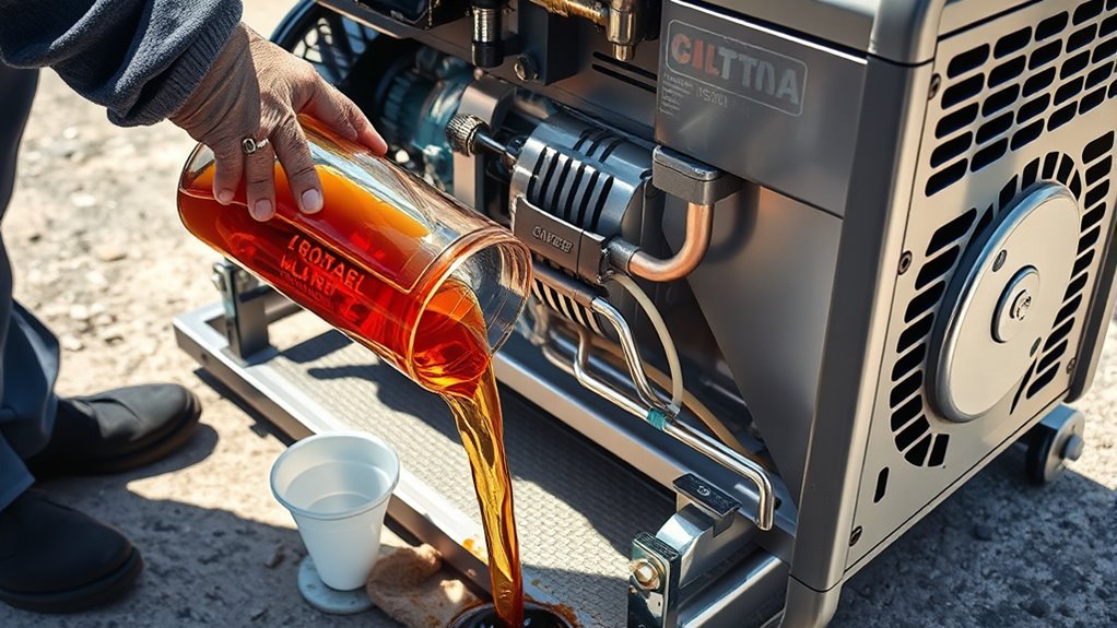 Skipping fuel stabilizer isn’t a good idea; it’s like leaving fuel to spoil in your tank. Using a fuel stabilizer before storage keeps fuel fresh, preventing gum and varnish buildup. This simple step boosts storage benefits, ensuring your generator starts smoothly when you need it again. So, always add fuel stabilizer, especially if you plan to store your generator for more than a few months. It’s an easy way to protect your equipment and save trouble later.