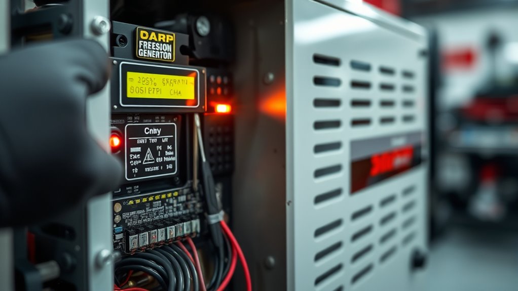 Think of your inverter generator’s electronics as a finely tuned orchestra. If you notice flickering displays, unusual noises, or difficulty starting, these are signs of electronic diagnostics revealing that some components are out of harmony. You might see warning lights or erratic performance, signaling it’s time for component replacement. Addressing these signs early prevents bigger issues, keeping your generator running smoothly and ensuring your electronics hit all the right notes.