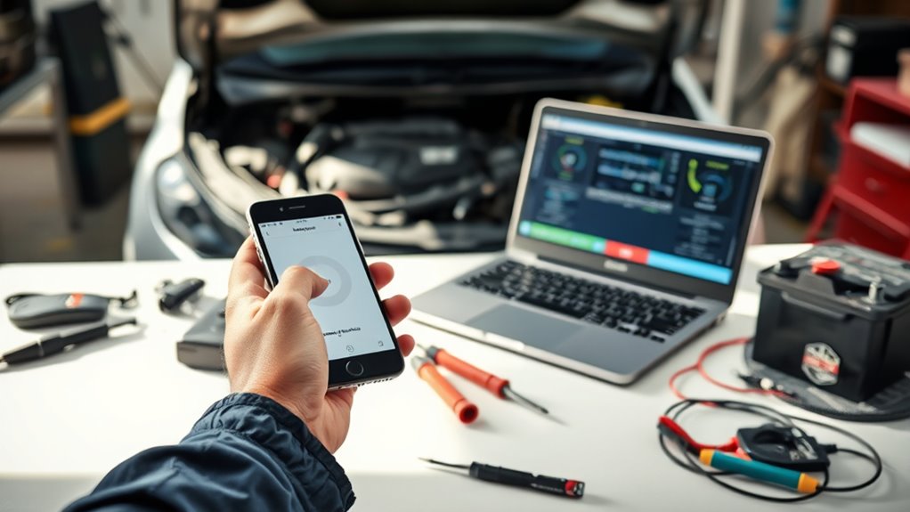 Testing sensors properly is essential to accurately diagnose starting issues caused by faulty sensors or computer system glitches. First, check sensor calibration to ensure readings are accurate. Use a multimeter or scan tool to verify sensor outputs against specifications. If a sensor’s signals are inconsistent or out of range, consider sensor replacement. Remember, faulty sensors can mislead your diagnosis, so thorough testing is key. To streamline the process, follow these steps: