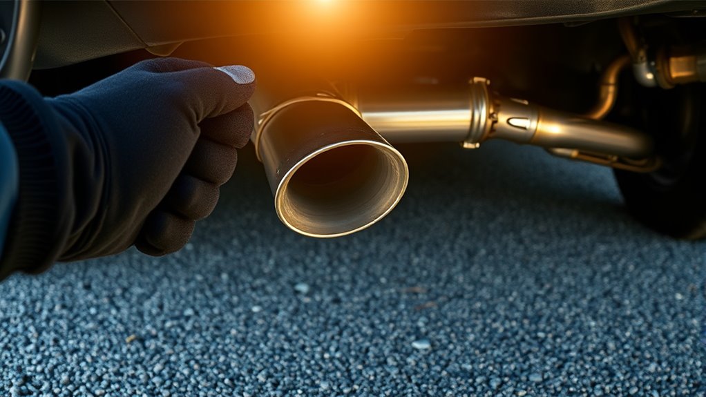 Knowing when to replace your muffler is essential for maintaining your vehicle’s safety and efficiency. The muffler lifespan varies, but most last between 40,000 and 80,000 miles. If you notice increased exhaust noise, rust, or leaks, it’s time for a replacement. Failing to replace a worn muffler can lead to violations of emission standards, resulting in fines or failed inspections. A damaged muffler can also compromise your safety by allowing harmful fumes into the cabin or reducing engine performance. Pay attention to unusual smells or decreased fuel efficiency, as these are signs your muffler may be nearing the end of its lifespan. Regularly monitoring your muffler ensures your vehicle stays compliant with emission standards and keeps you safe on the road.