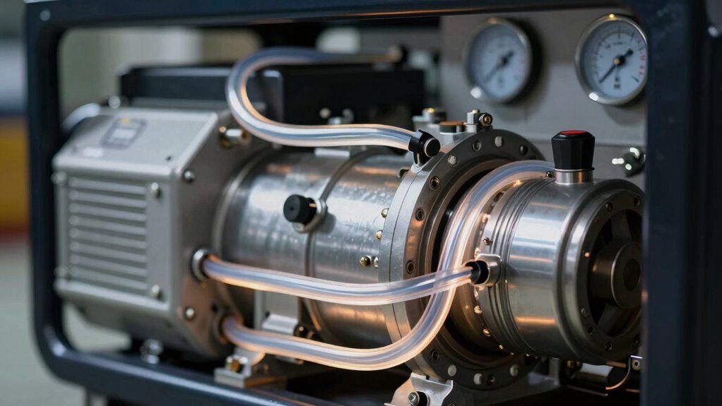 Getting a generator to provide continuous power isn’t just about turning it on; it involves proper startup procedures. These startup procedures are vital because they set the foundation for reliable, long-term operation. You should always check the oil levels, fuel supply, and coolant before starting the generator. This proactive approach helps prevent damage and guarantees the generator runs smoothly from the moment it’s turned on. During startup, you need to follow a sequence—such as turning on the fuel supply, engaging the choke if necessary, and gradually starting the engine—to avoid sudden jolts or stalls that could compromise continuous operation. Once running, it’s equally important to monitor the generator’s performance, checking for any irregularities like unusual noises, vibrations, or fluctuations in voltage. Proper startup procedures help establish a stable baseline, which is indispensable for maintaining continuous power over extended periods. Additionally, understanding the importance of filter sizing and flow can ensure that the generator’s components are protected and functioning optimally for ongoing reliable operation.