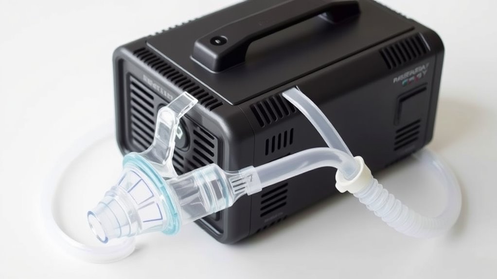 A portable generator can power your CPAP machine for several hours, depending on its battery capacity and your device’s power consumption. Typically, a generator with a higher battery capacity offers longer run time, sometimes up to 8-12 hours on a full charge. To guarantee uninterrupted sleep, consider a generator that matches your CPAP’s wattage needs and has enough battery capacity for your desired duration of use.