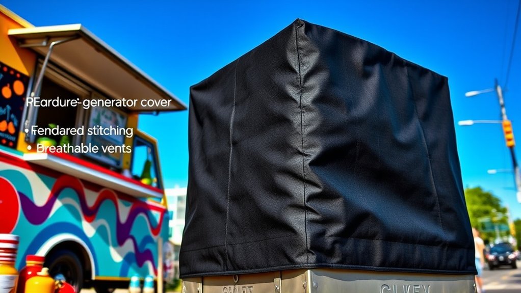 Yes, there are covers specifically designed for portable food truck generators. I’ve found that these covers are tailored to fit various generator sizes, offering excellent protection against weather and debris. They’re made from durable, weather-resistant materials, so I can rely on them to keep my equipment safe and secure, no matter the conditions. Investing in a dedicated cover guarantees my generator stays in top shape for every job.