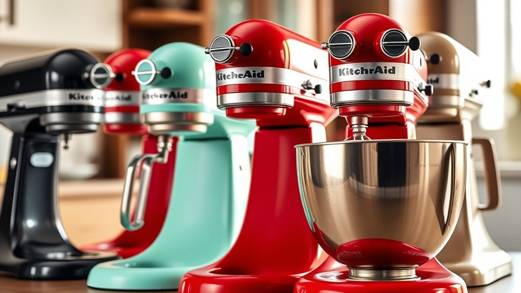 Choosing the perfect KitchenAid stand mixer color is like finding a piece of art that speaks to your soul. Whether you prefer bold reds or subtle neutrals, your chosen hue can transform your kitchen into a personal gallery. Remember, the right color doesn’t just match your style—it elevates your space and inspires your culinary creations. So pick the one that makes your heart sing, and let your kitchen become a masterpiece.