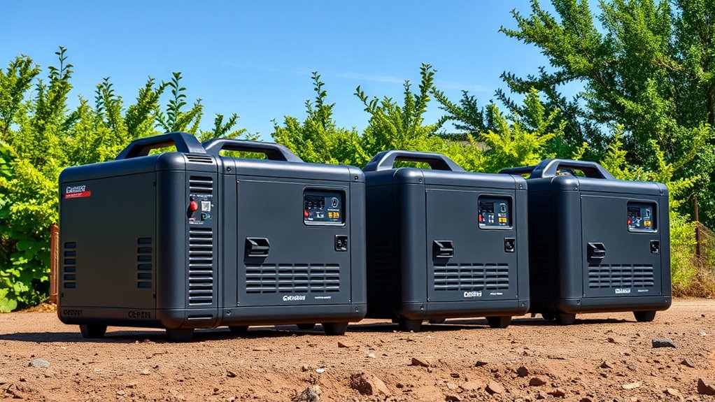 You won’t believe the safety features packed into these generators! They typically include overload protection, automatic shutoff, and GFCI outlets to prevent shocks. Many models also have low-oil shutoff to protect the engine and guarantee longevity. These features keep you safe and your equipment secure, making them perfect for sensitive electronics. Trust me, these safety measures make operating these generators worry-free and extremely reliable.
