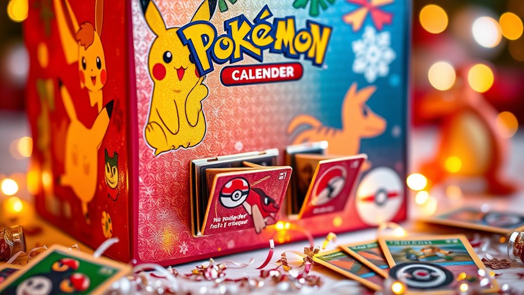 Considering the digital and physical extras included in a Pokémon TCG holiday calendar can substantially enhance the holiday experience. It’s important to check if the calendar offers digital perks like code cards for online gameplay, which can make your digital battles more exciting. Some calendars include exclusive foil cards, booster packs, or even access to Pokémon TCG Live!, adding real value for collectors and players alike. Digital bonuses, such as unique in-game items or virtual collectibles, can appeal to tech-savvy fans who enjoy blending physical and digital play. Striking a balance between the quality of physical surprises and digital content ensures the calendar caters to your preferences. Ultimately, choosing one with well-rounded extras can make the holiday season more engaging and rewarding.