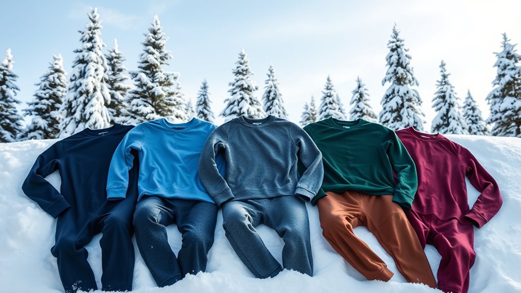 Looking for the best thermal underwear for skiing in 2025? I recommend options like SIMIYA’s versatile sets, fleece-lined styles like Cuddl Duds, and high-quality long johns from HEROBIKER and CL Convallaria, all designed for warmth, moisture-wicking, and flexibility. These guarantee comfort on cold slopes while supporting a sleek fit. If you keep exploring, you’ll find out which features make these choices perfect for your winter adventures.