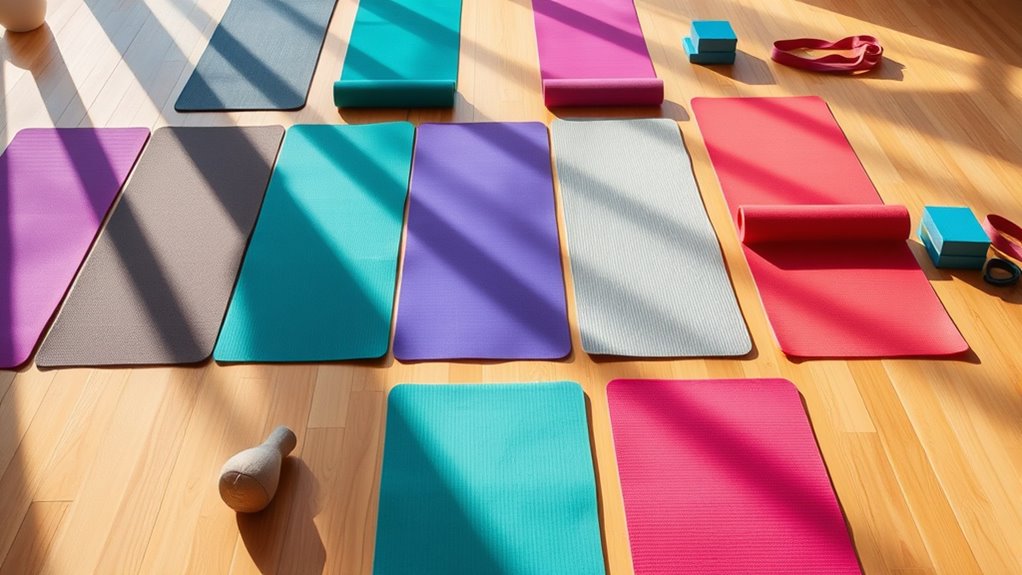 Ever wonder what thickness is best for beginners? I recommend a yoga mat that’s about 3 to 5mm thick. It’s thick enough to cushion your joints during poses but still provides stability for balance. Thinner mats can be slippery and less supportive, while thicker ones might make you feel unstable. Find a balance that offers comfort without sacrificing control, and you’ll enjoy your practice even more.